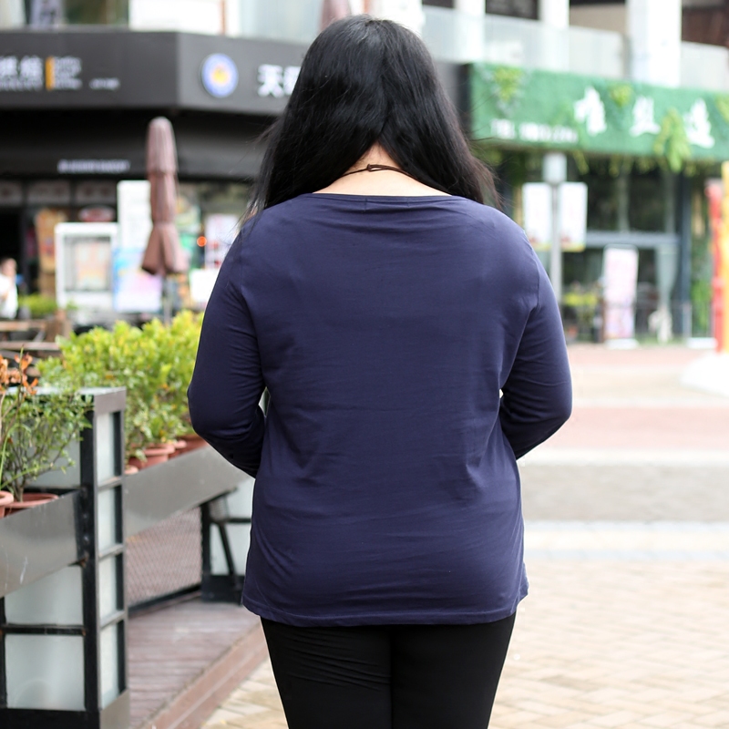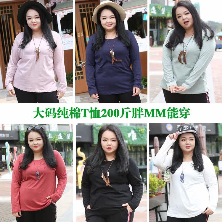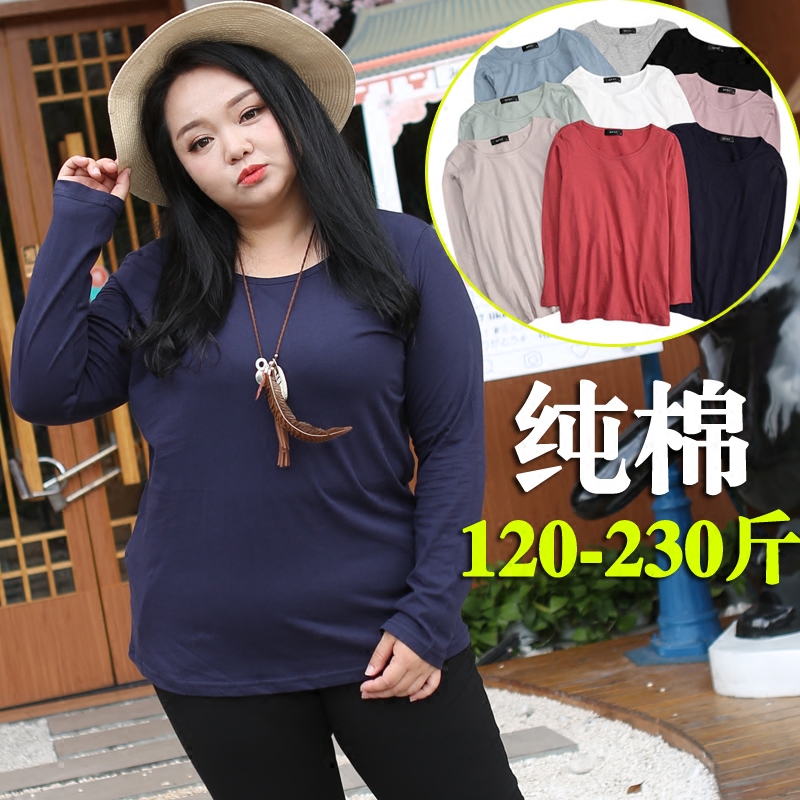 Large size women's loose T-shirt spring and autumn bottoming shirt women's long-sleeved 200 jin fat mm solid color round neck T-shirt bottoming shirt