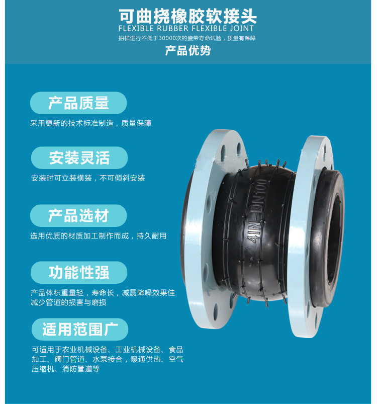 Rubber soft connector KXT10 16 oil temperature acid and alkali flexible secondary water supply pump equipment pipeline shock absorption