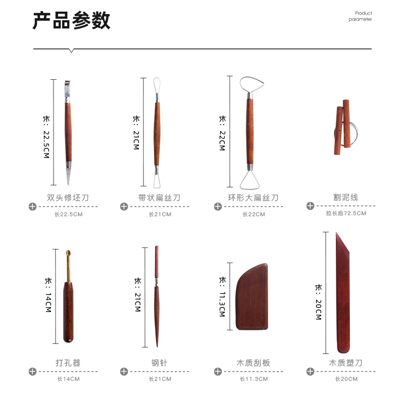 Building space pottery tool red Eight pieces of sleeve cut mud wire clay plastic knife clay plastic suit