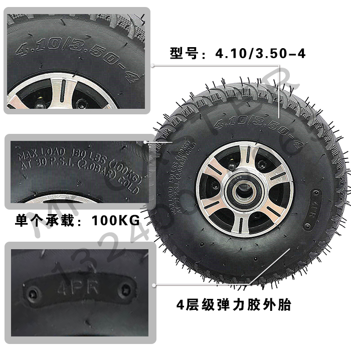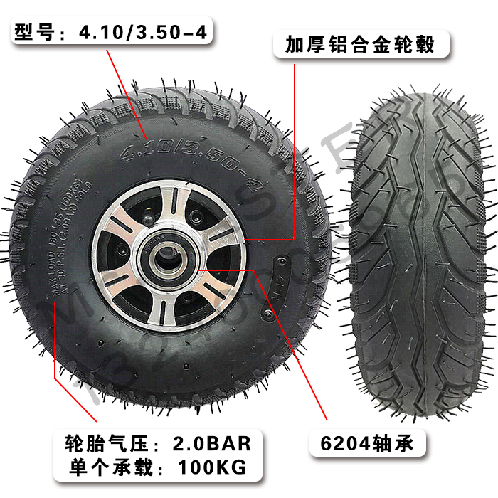 4 10 3 50-4 inflatable wheel 10 inch aluminum alloy thickened air wheel Tiger driver push electric flat tire