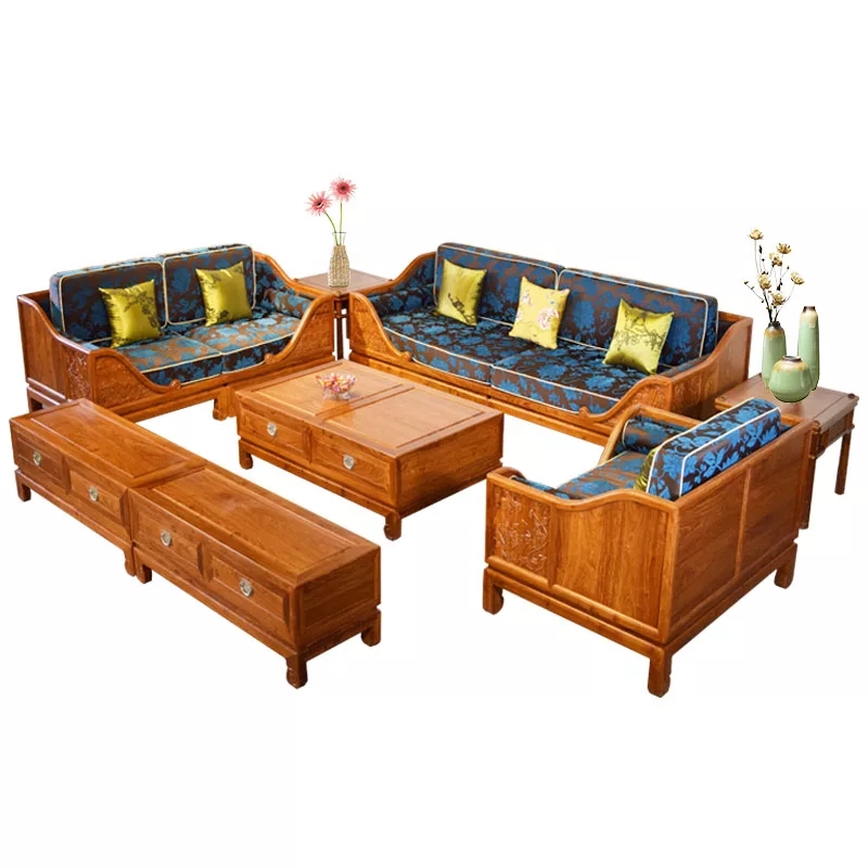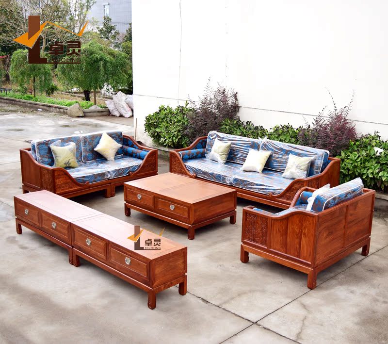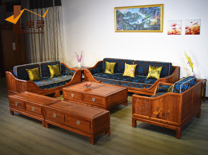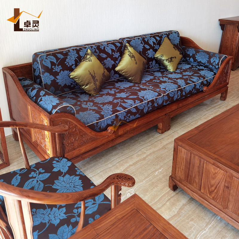 Hedgehog red sandalwood lotus pond moonlight living room sofa combination solid wood furniture new Chinese rosewood living room sofa combination