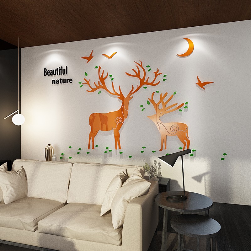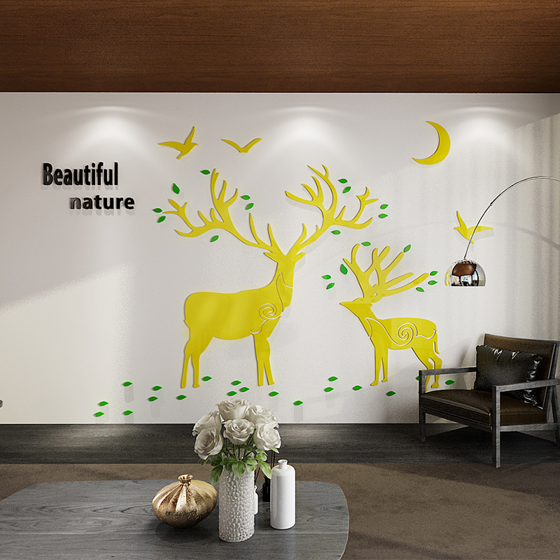 Creative Little Deer 3d Solid Wall Sticker Drawing Room Sofa TV Background Wall Decoration Bedroom room Placement Self-adhesive