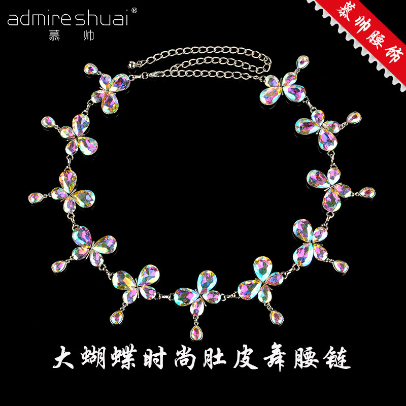 Anti-scratch marine dance waist jewelry female butterfly water drops drill belly dance waist belt su-drill jewelry