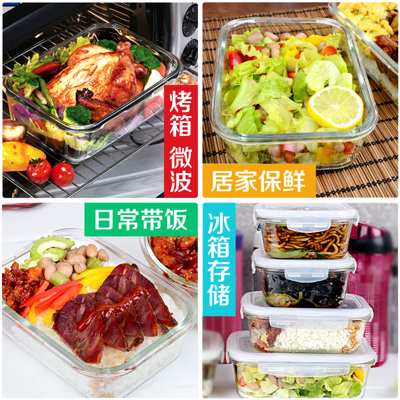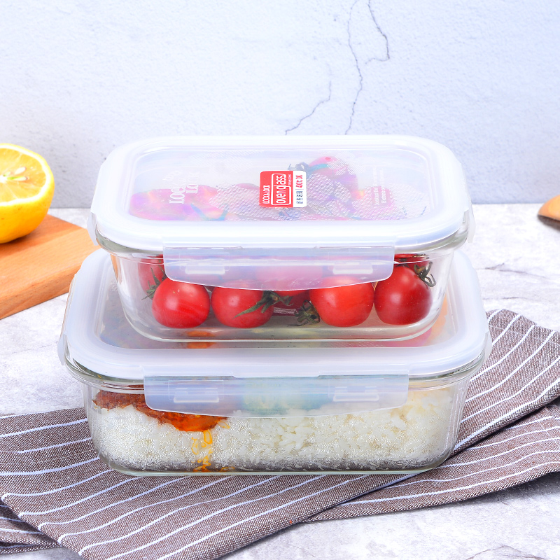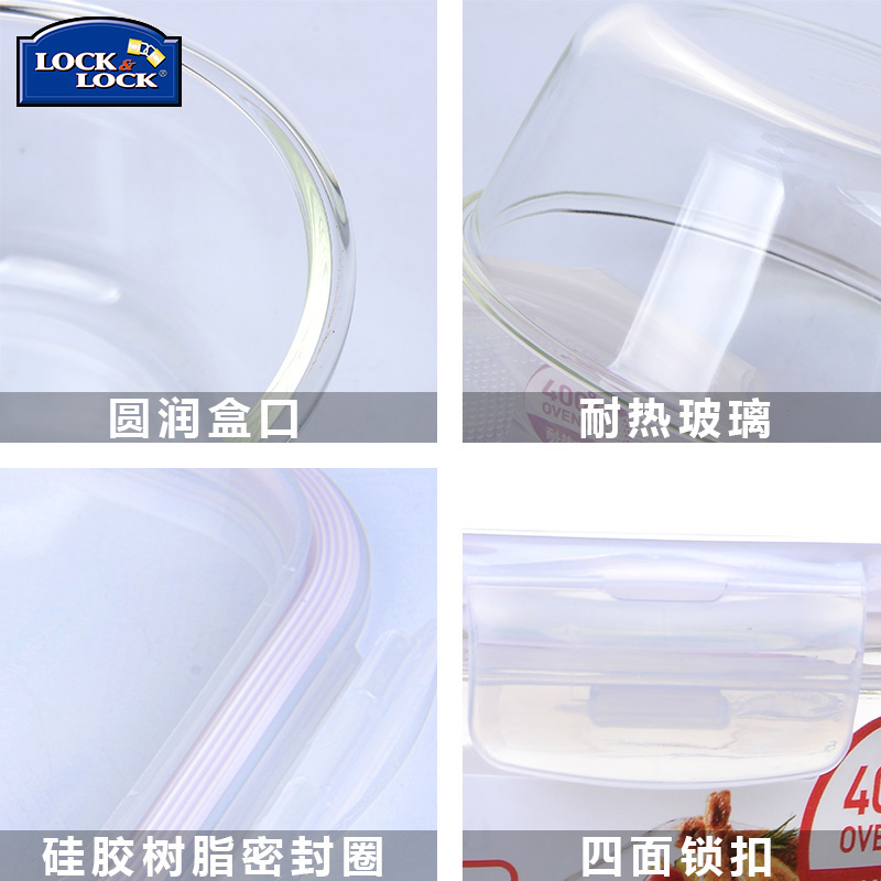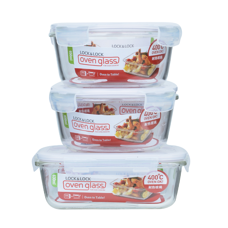 Lock and lock fresh box Heat-resistant glass lunch box Microwave oven special student lunch box Office worker 3-piece set