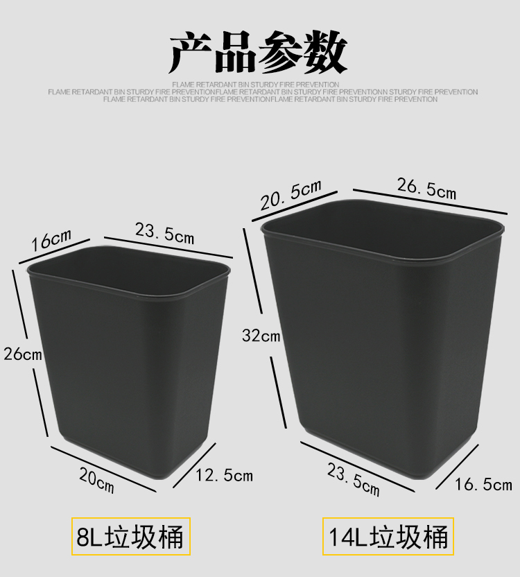 Baiyun flame retardant trash can household powder room plastic flame retardant room bucket hotel hotel flame retardant trash can