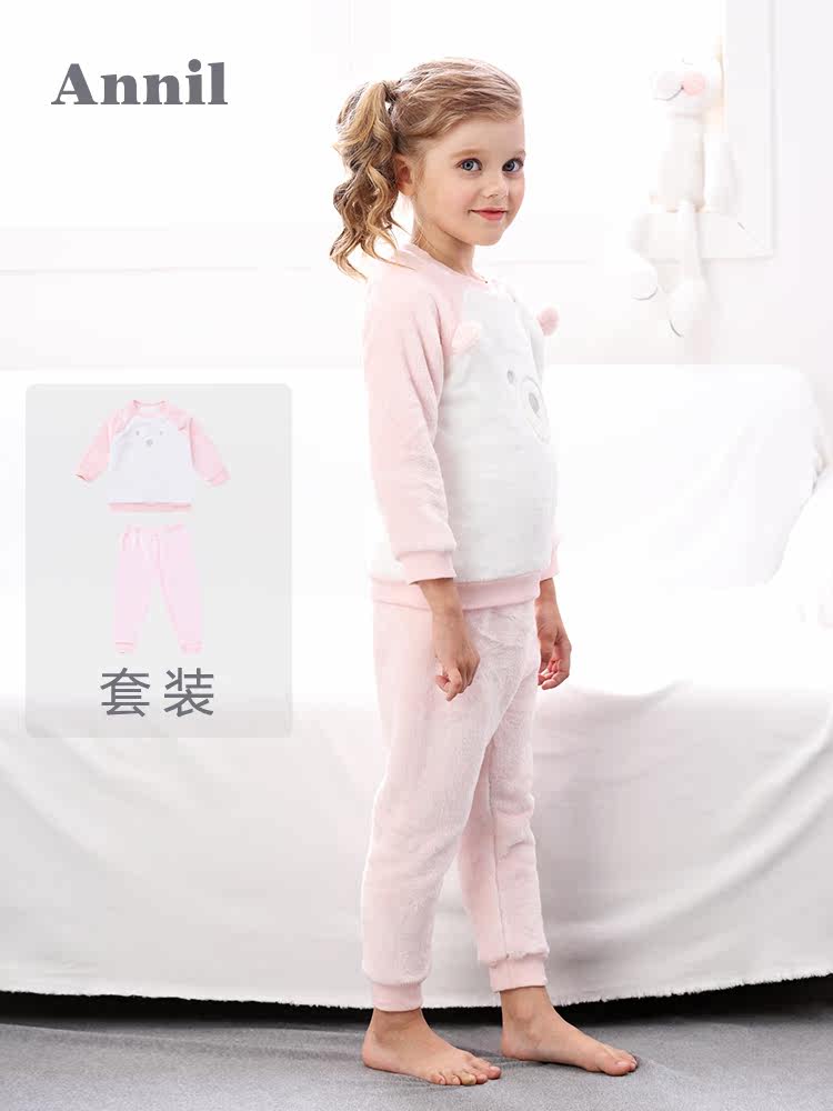 Annil Children's clothing Men's and women's children's warm clothes plus plush home clothes Autumn and winter long-sleeved warm pants pajamas set