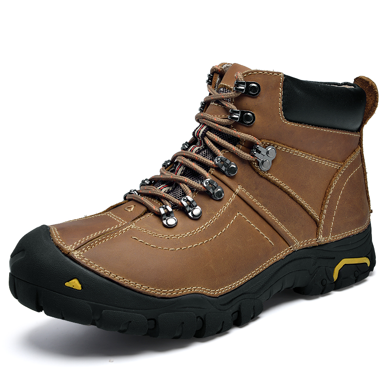 Winter hiking shoes men's leather high tube plus velvet warm outdoor work shoes waterproof non-slip wear-resistant