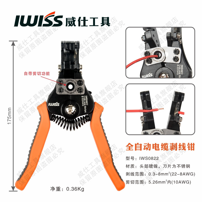Automatic wire stripper Cable stripper dial pliers IWS0822 Stripping and shearing integrated pliers Stripping pliers 0 3-8mm2