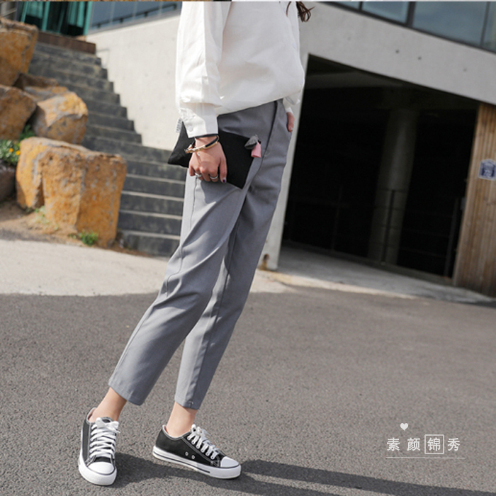 Light grey minimalist casual Western pants 90% pants working pants OL Women summer ~ loose straight drum pants Career commuter pants