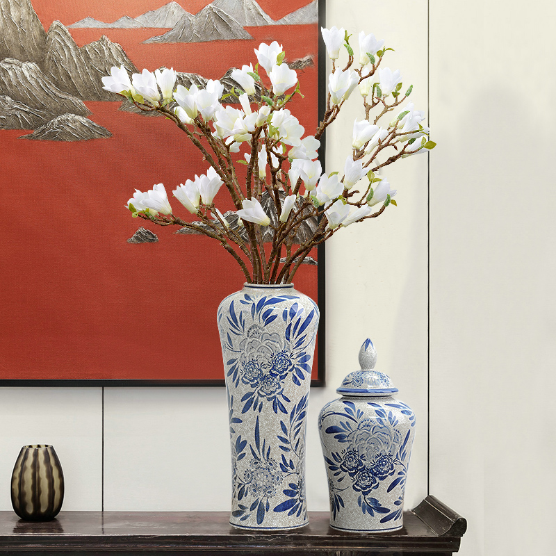 New Chinese-style green ceramic ceramic vase living room in the retro-style room of the retro-chamber of the junta cans light luxury dry flower soft swing