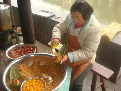 Shanghai Fengjing specialty Wuhua egg yolk rice dumpling Egg yolk meat rice dumpling combination set Handmade grandma rice dumpling Jiaxing meat rice dumpling