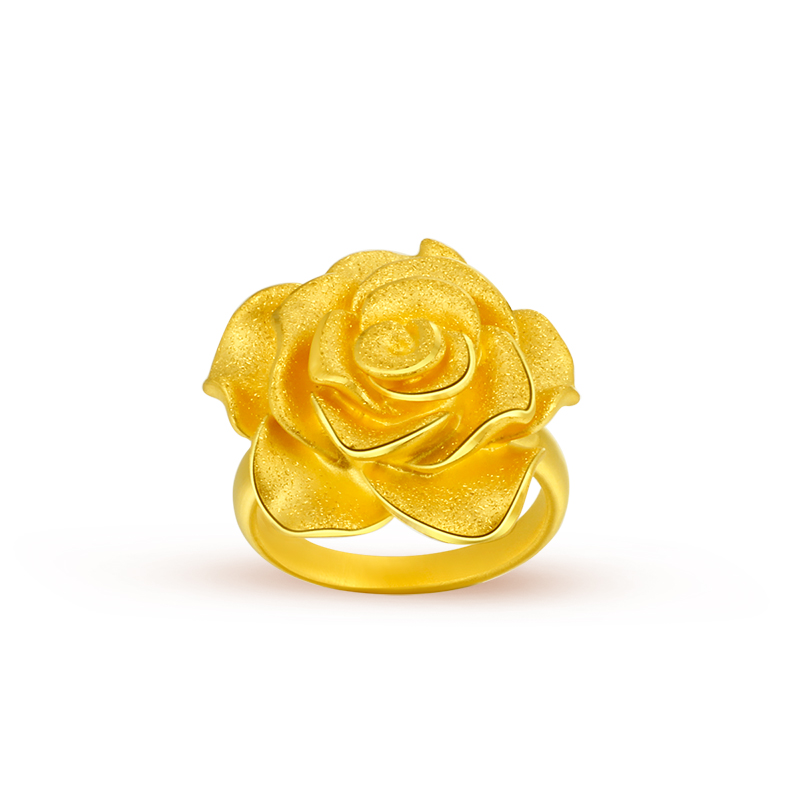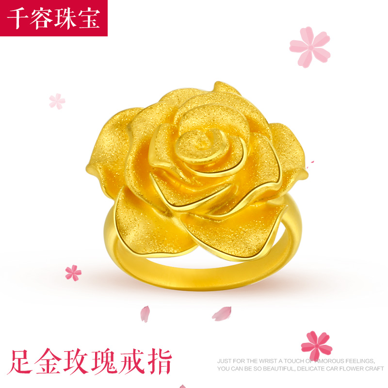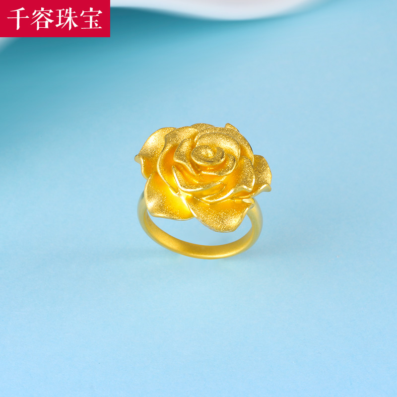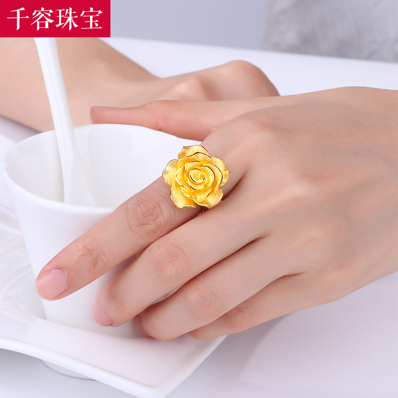 New gold rose flower ring 3d hard gold fashion flower ring index finger ring girlfriend gift pure gold 999 wedding ring