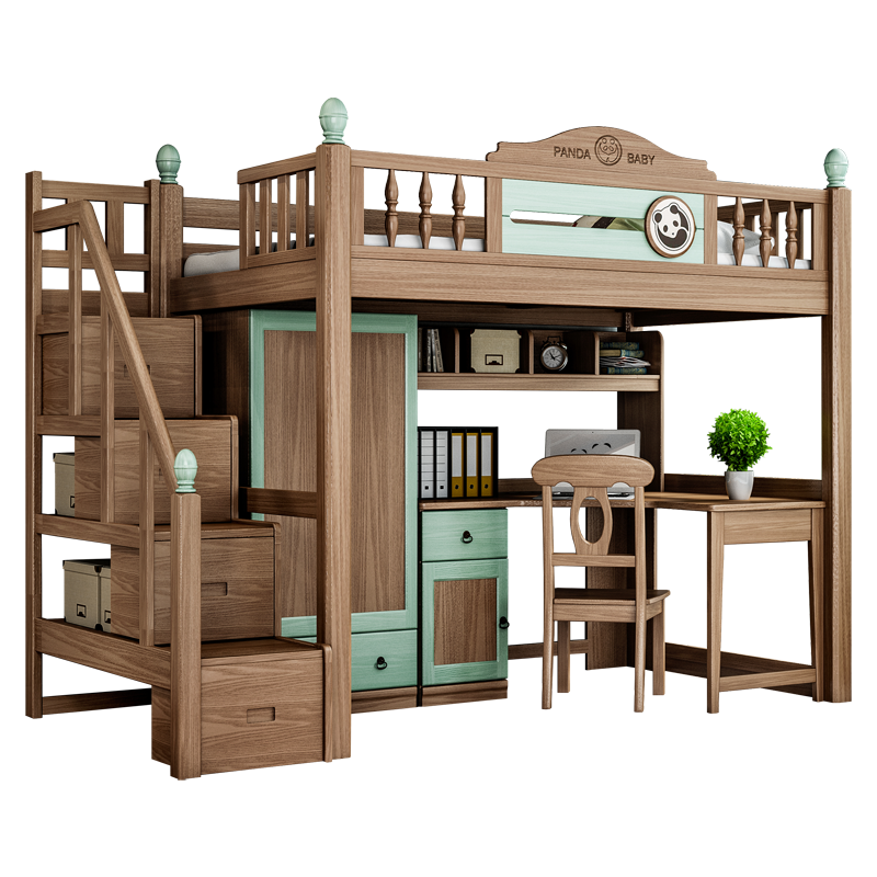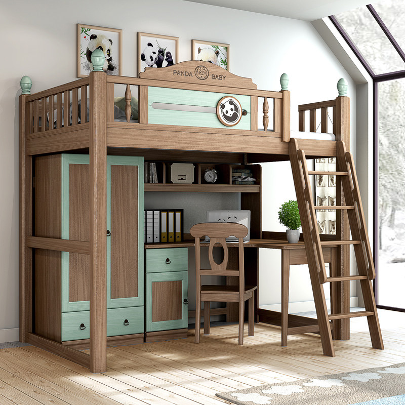 Full solid wood Children's wardrobe upper and lower bed multifunctional combined upper bed lower table high and low bed with desk integrated provincial space