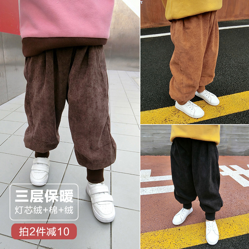 Winter children corduroy pants boys and girls plus velvet padded casual Haren pants bloomers baby wearing cotton pants