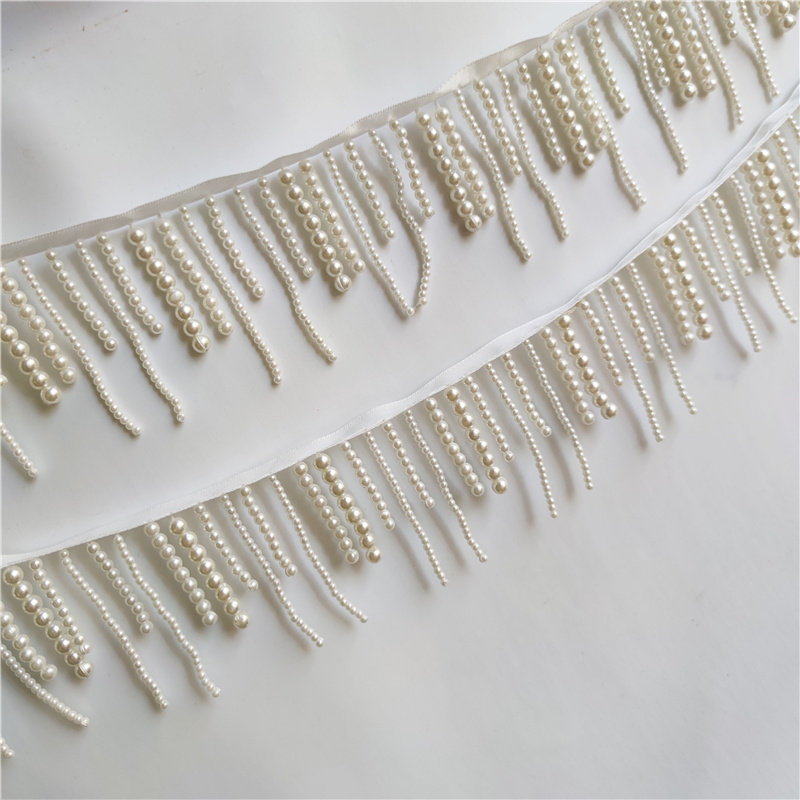 Handmade dance clothes lace shoes edge flower small length water mill bubble beads tassel factory direct sales white shopkeeper recommended
