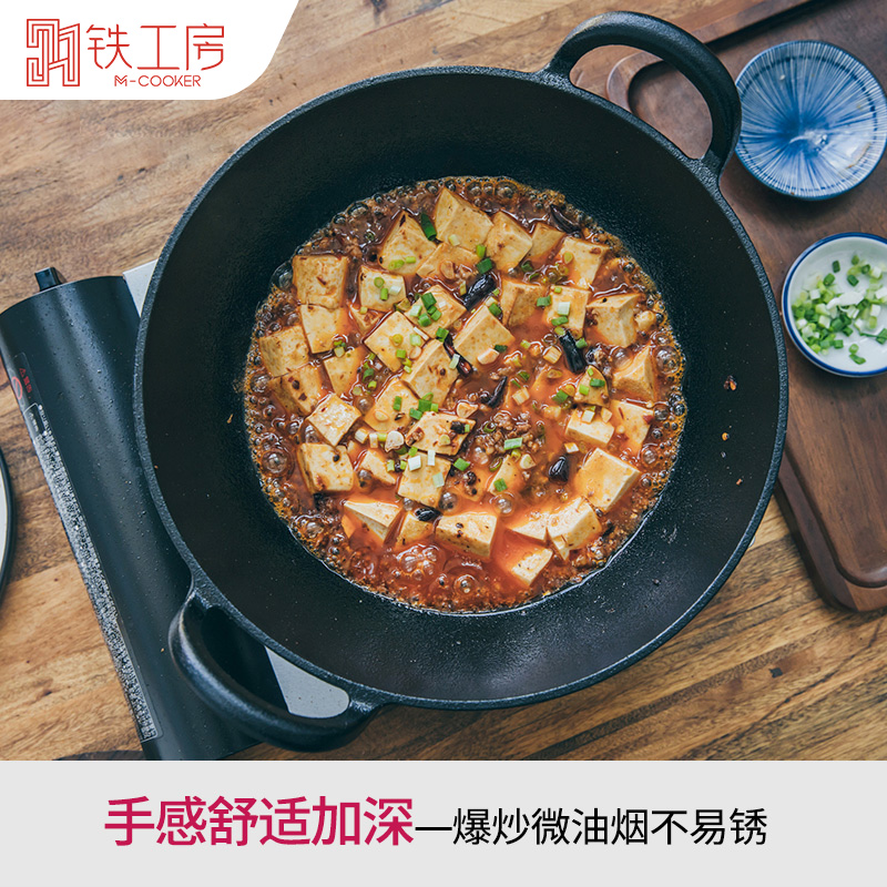 Iron Room Iron Boiler Electromagnetic Fiber Cooker Household Old Coated Non-stick Iron Bot Double Ear Cast Iron Pan