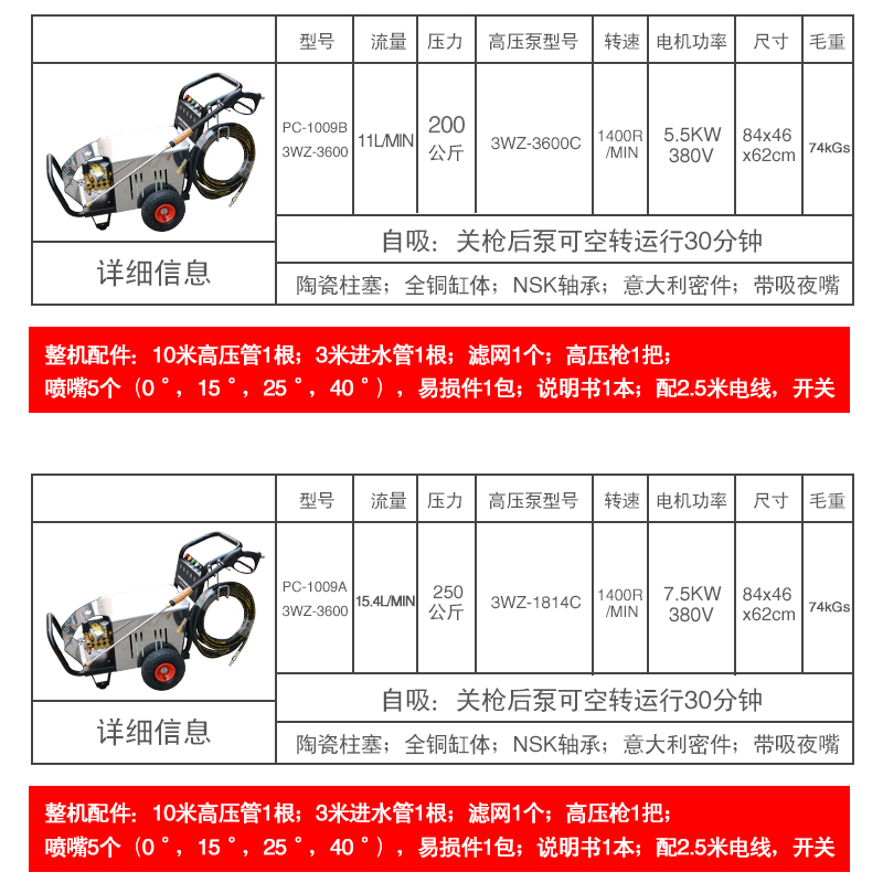 7 5kw high-pressure cleaner 1009A3kw high-pressure cleaner 10134kw high-pressure cleaner 1013B5 5kw high-pressure cleaner 10094k