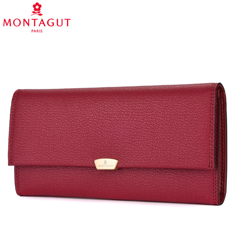 Montagut women's wallet long version buckle simple women's wallet all-match fashion leather wallet large-capacity sweet clutch bag