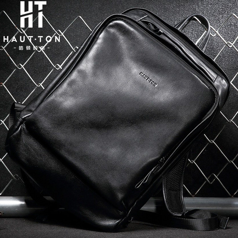 Harton's Leather Shoulder Bag Man Head Cowboy Backpack Business Middle-aged Men's Bookbag Travel Pack