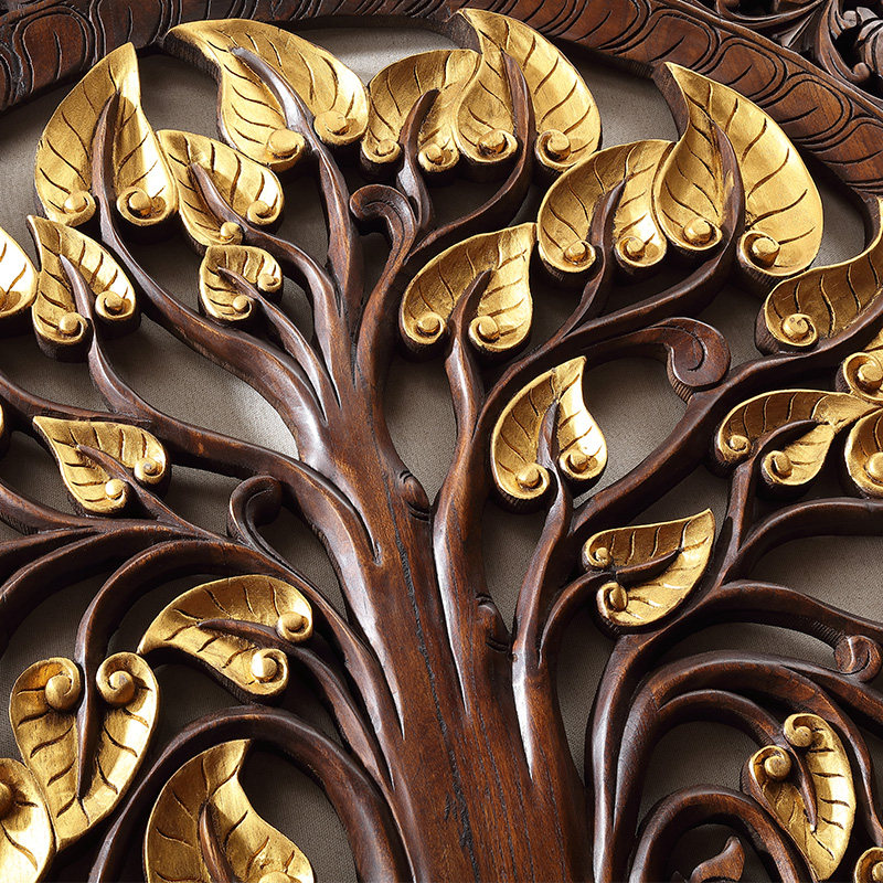 Fortune Tree New Chinese Living Room Wood Carved Pendant Southeast Asia Thai Style Wall Decoration Thai Hyun Guan Wall Hanging Accessories