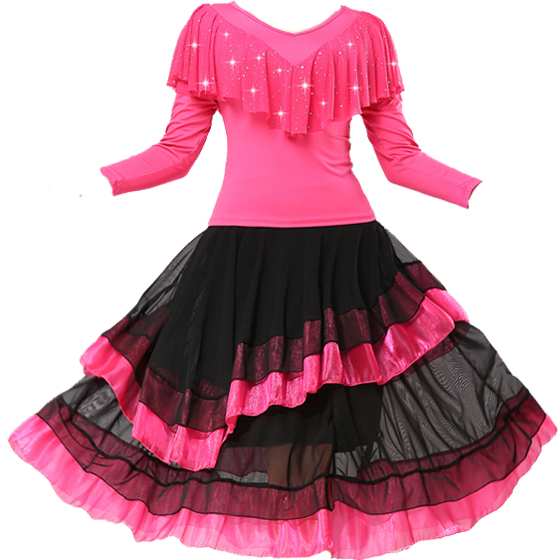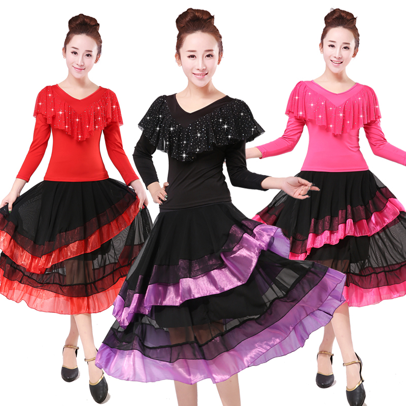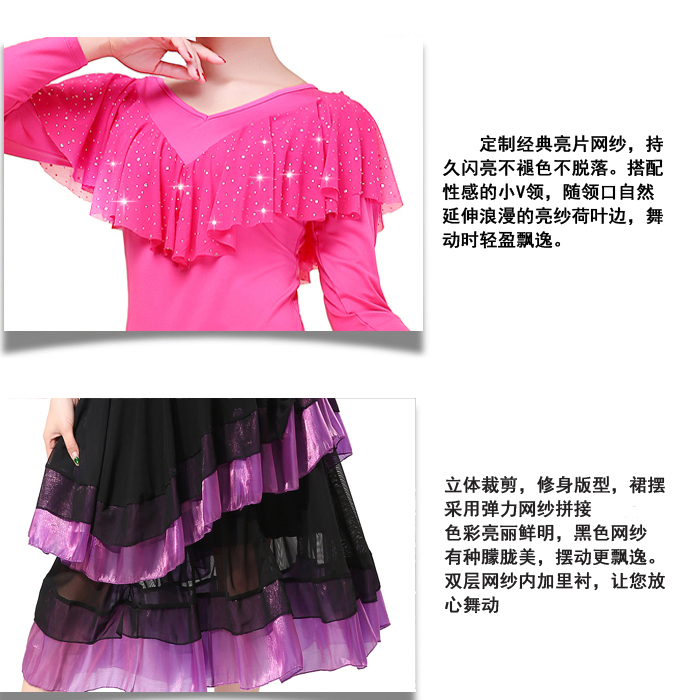 Fall/winter new Latin dance clothing female adult dance clothing long sleeve large skirt square dance performance clothing performance clothing