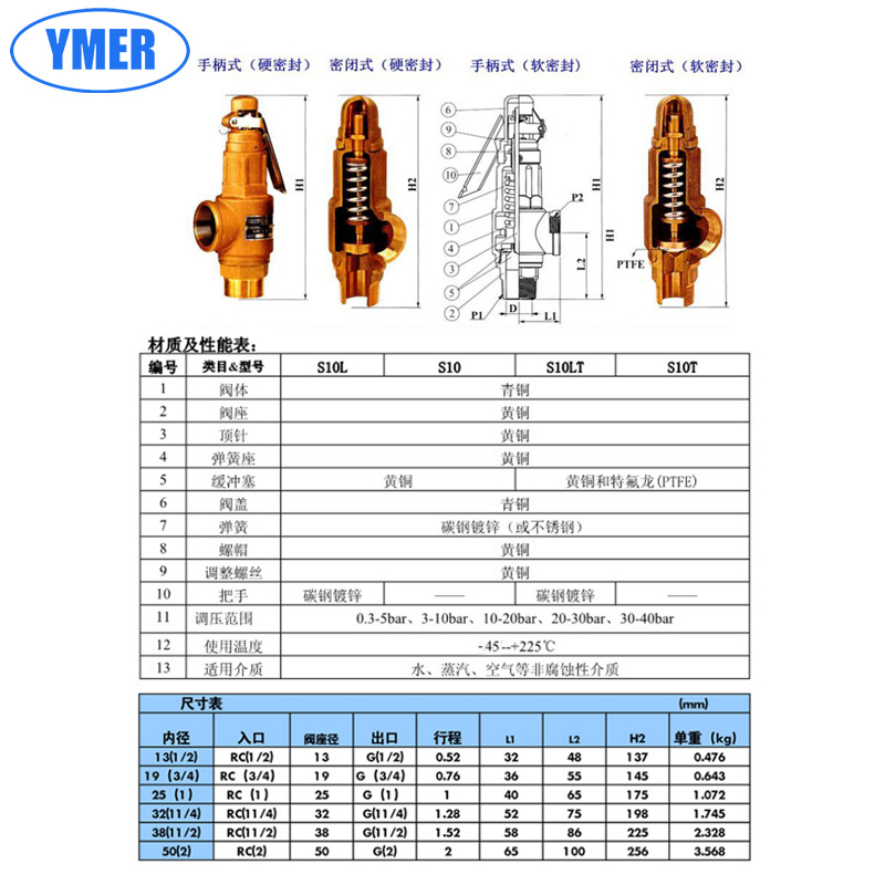 Spring type safety valve Automatic pressure relief valve S10L steam boiler gas tank pressure tank relief valve 4 points DN25