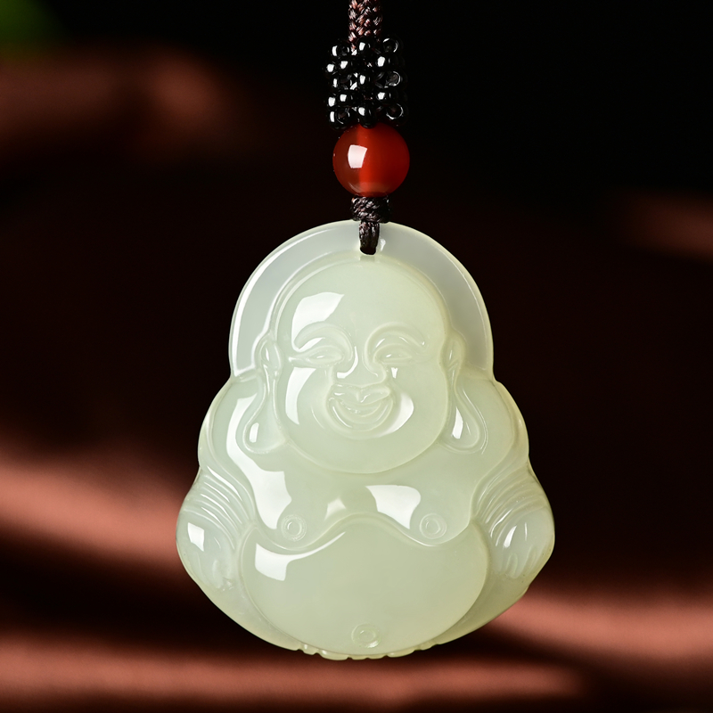 Natural Xinjiang Hetian Jade Guanyin Jade Buddha male and female lovers white Jade Guanyin necklace Laughing Buddha Jade Jade pendant