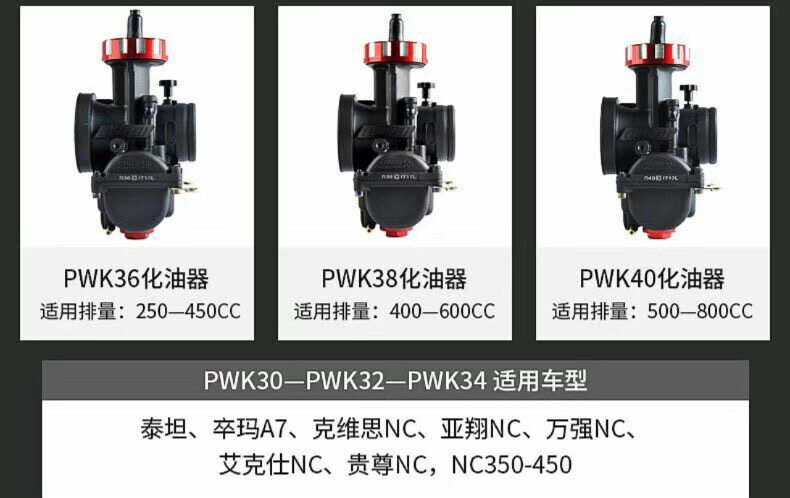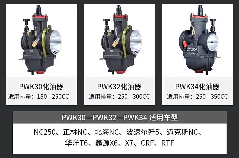Sports version PWK26 (oil delivery nozzle) Sport version PWK28 (nozzle tip) Sport version PWK30 (oil delivery nozzle) Sport version PWK32 (oil delivery nozzle) Sport version PWK34