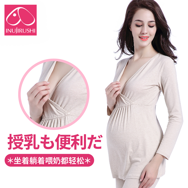 Japanese dog print Maternity nursing clothing postpartum warm maternity home wear Nursing Nursing maternity clothing suit