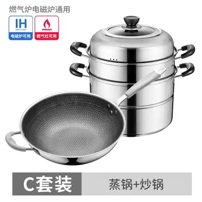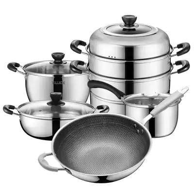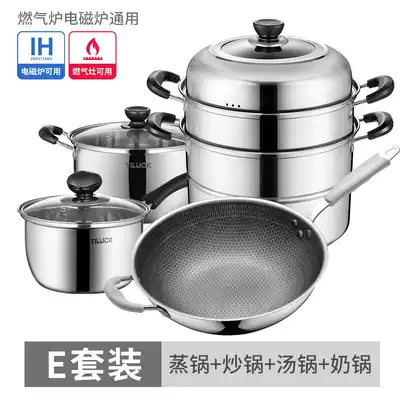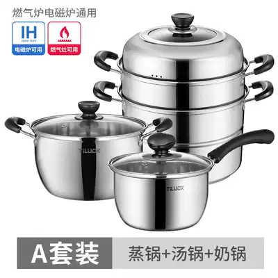 Tilock pot set combination stainless steel three-piece household pan steamer soup pot milk pot hot pot universal