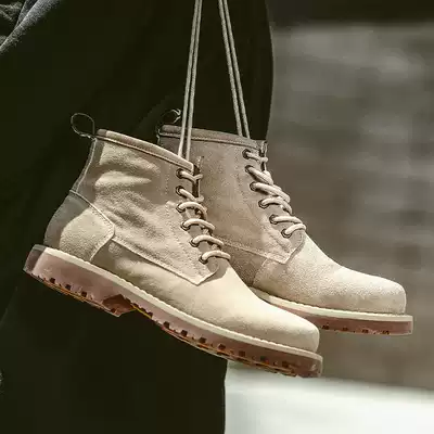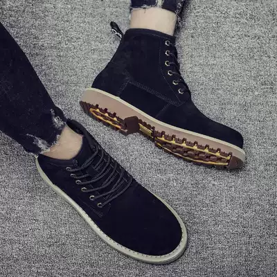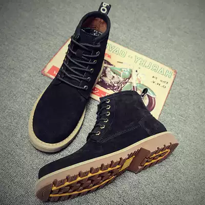 Martin boots men boots tube shoes British high boots winter fleece lining leather platform suede work boots