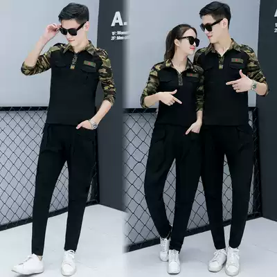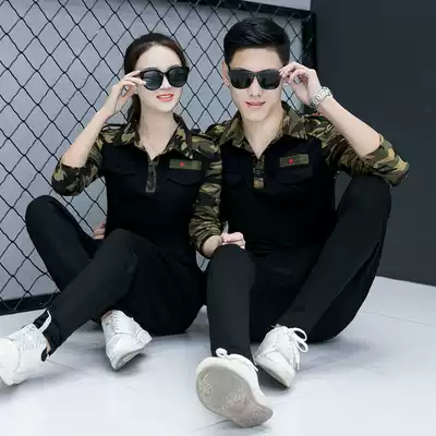 Autumn dress new sailor dance costume couple two-piece camouflage uniform Harlan pants women square dance black long sleeve T-shirt