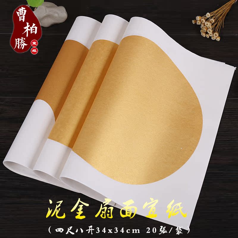 Two packs of 4-foot-8 open bucket square mud and gold fan rice paper Calligraphy and painting creation Xuan eight points cooked 20 sheets