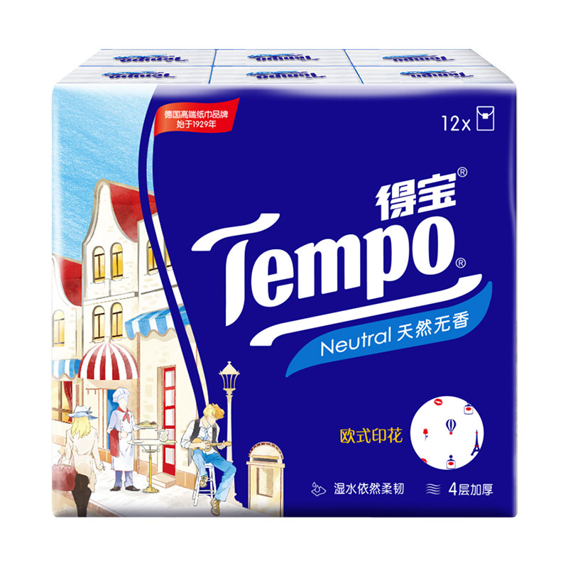 TempoTempo paper handkerchief European print 4 layers 7 sheets * 12 small packs of natural odorless facial tissue