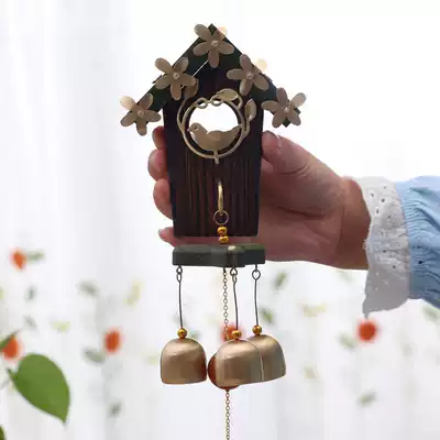Shop open bell pure copper hanging door on the anti-theft wind chime hanging door decoration European style garden creative girl bedroom
