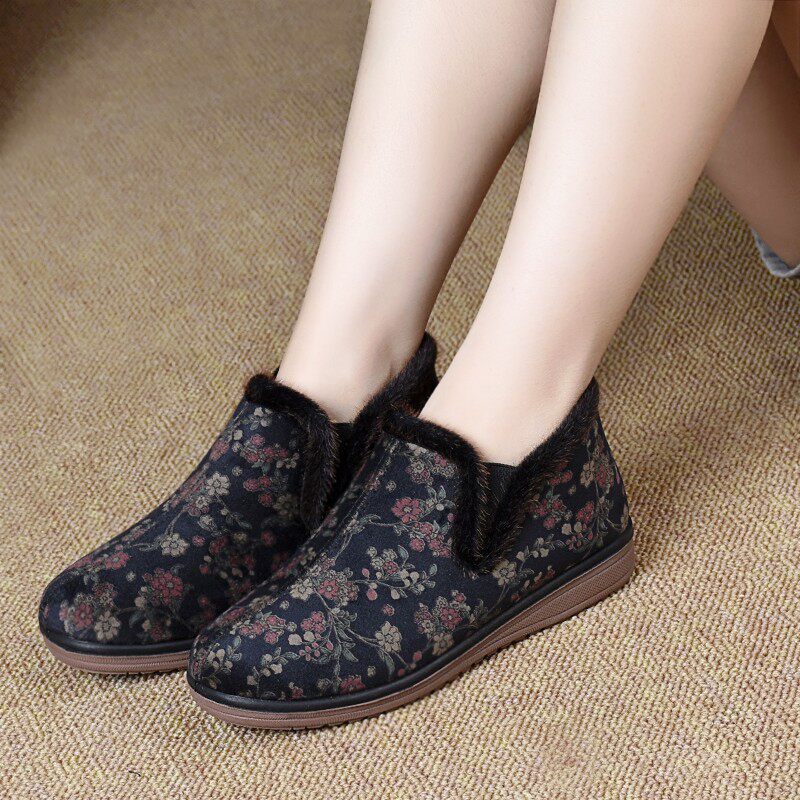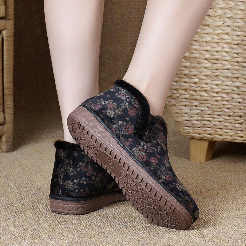Old Beijing cotton shoes women's winter plus velvet traditional old lady cotton boots warm mother shoes comfortable thickened non-slip elderly shoes