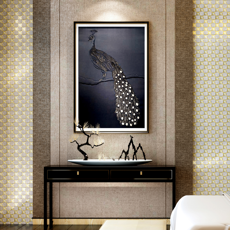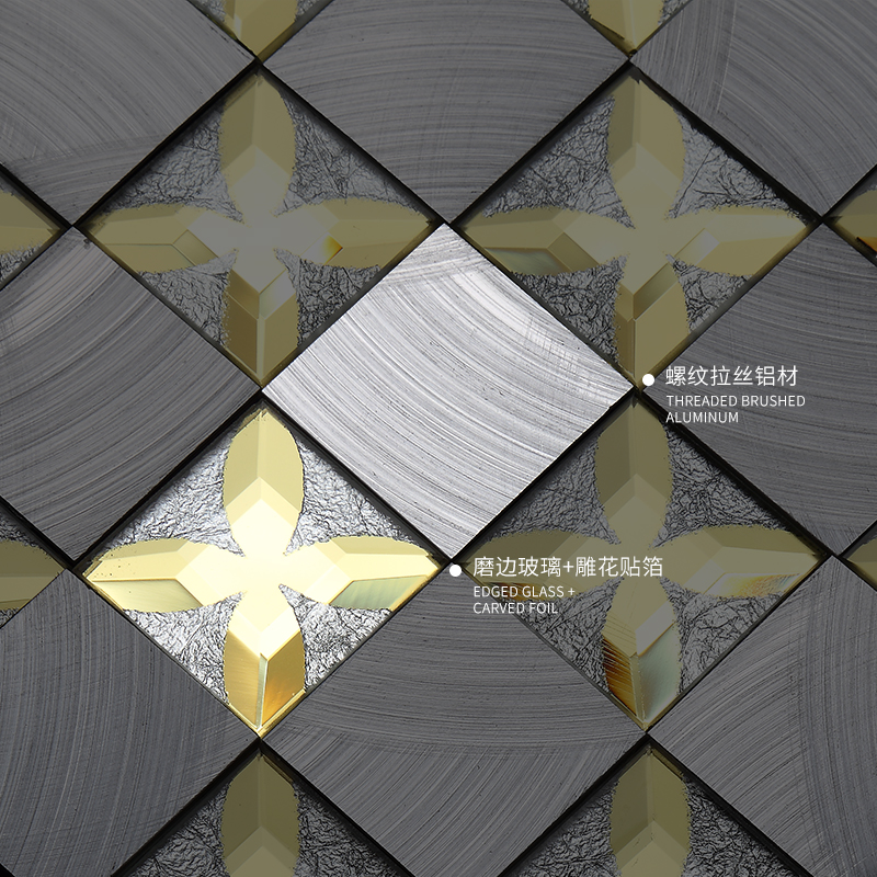 Mingmahui light luxury glass mosaic tile TV background wall gray metal wire drawing living room porch decoration stickers