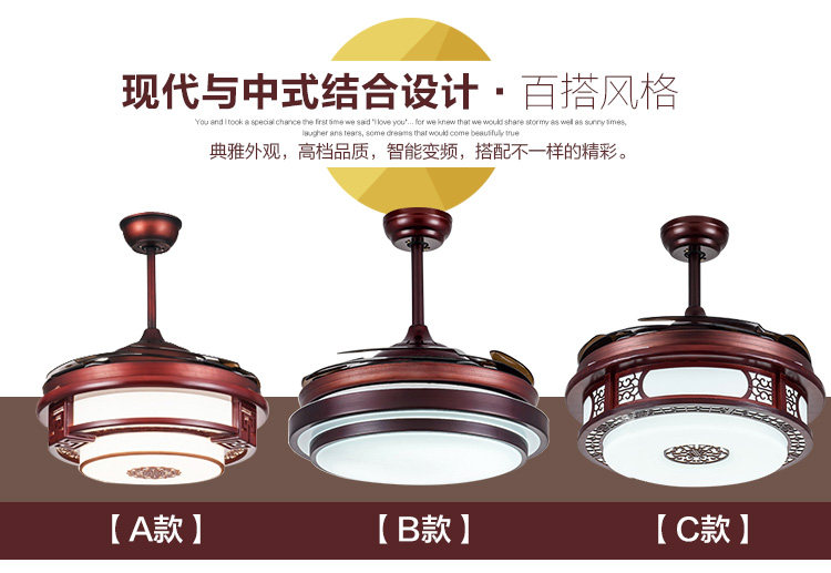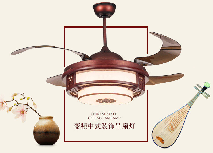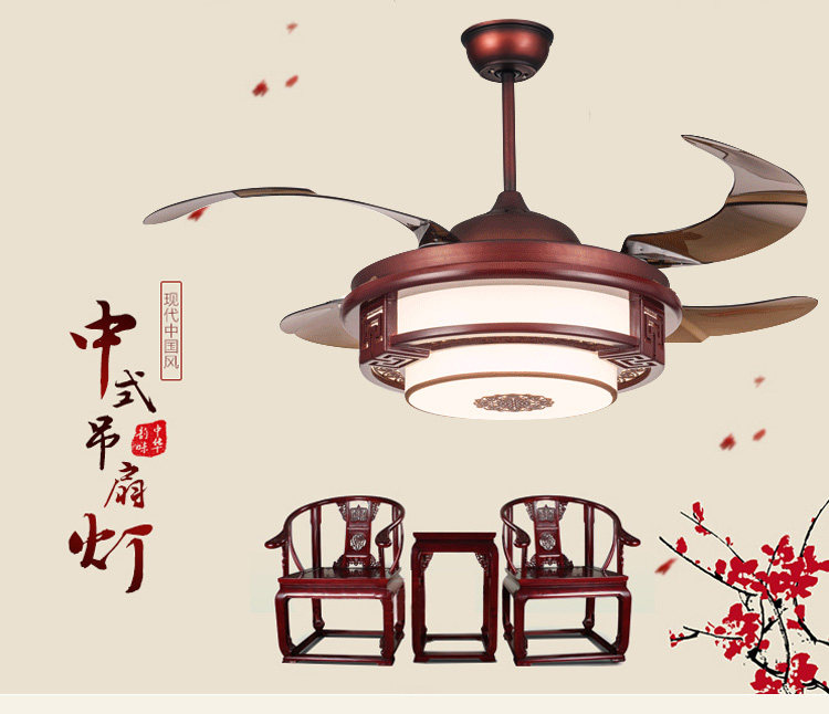 New Chinese ceiling fan light invisible ceiling fan light dining room Living room Bedroom Frequency Conversion Imitation Solid Wood Home With Electric Fan Chandelia