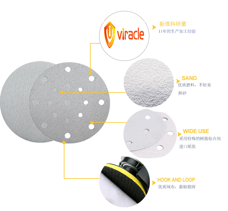 Taurus flocking dry sandpaper 2 inch 3 inch 4 inch 5 inch 7 inch 9 inch round gas mill grinding self-adhesive brushed white sand dish