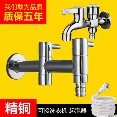 All-copper washing machine faucet three-way one-in-two-out one-point-two double-use double-head double-outlet mop pool dual-use