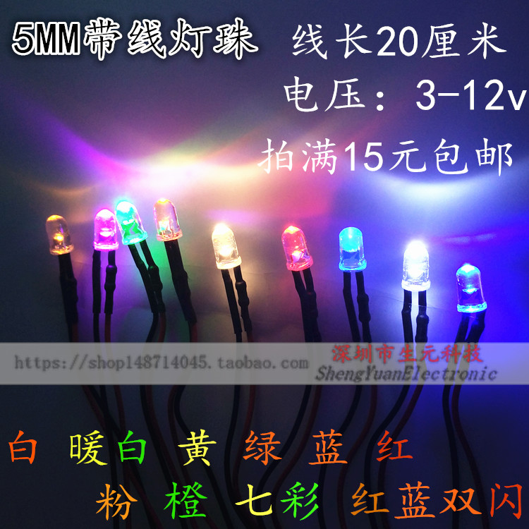3V 6v 12v 24V with wire luminous tube 5mm lamp bead welding wire led light 12 volt wire length 20CM