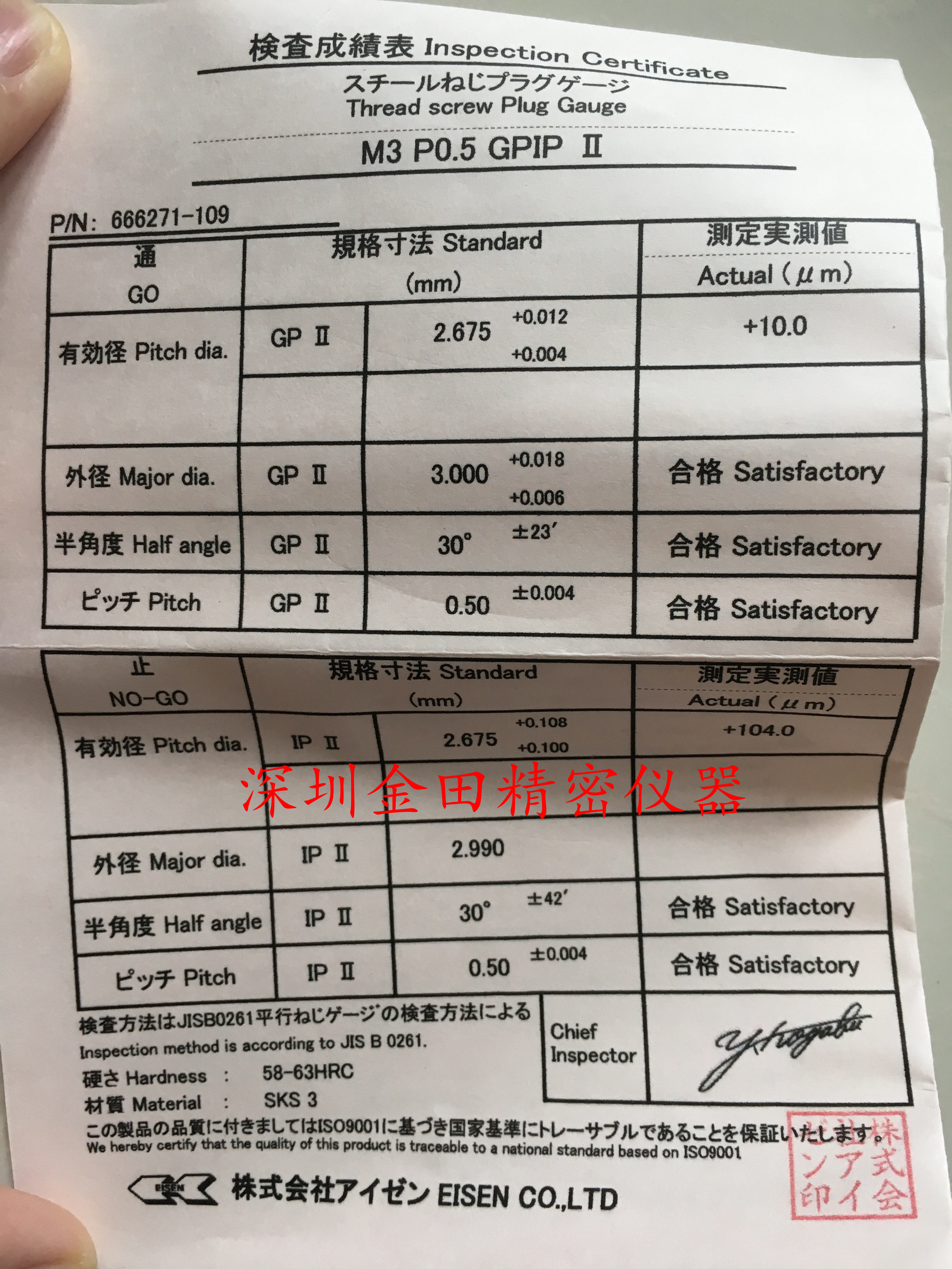 Original Japanese imported EISEN thread plug circuit specification M3P0 5-6H GPIPII