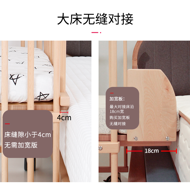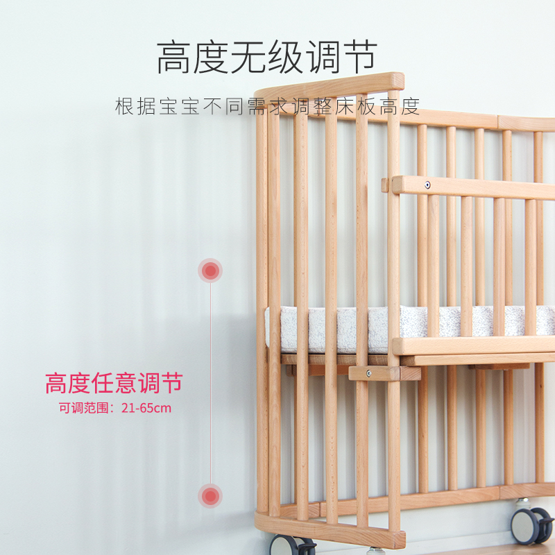 Carinababe crib small apartment splicing big bed bb beech bed multifunctional removable newborn cot