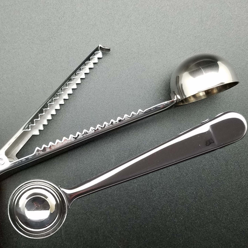 Stainless Steel Coffee Fetch Bean Spoon Volume Spoon Closure Clip Milk Tea Shop Fruit Powder Spoon Long Handle Metering Spoon with clip 15ml
