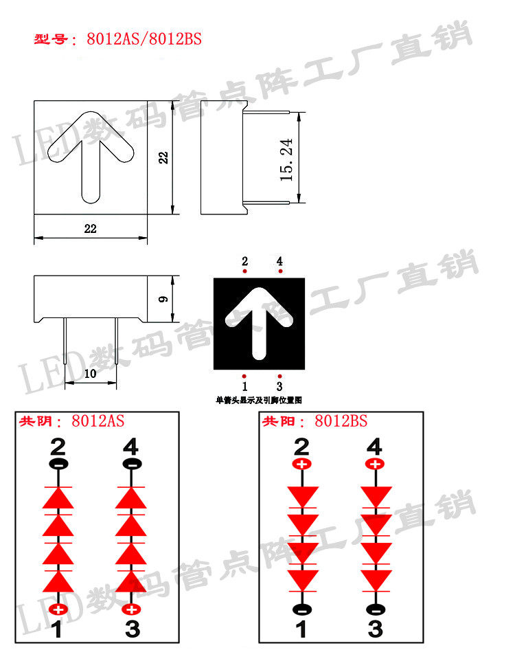 0 8 inch arrowhead glow tube red light 22 * 22mm red arrows 8012AS 8012BS