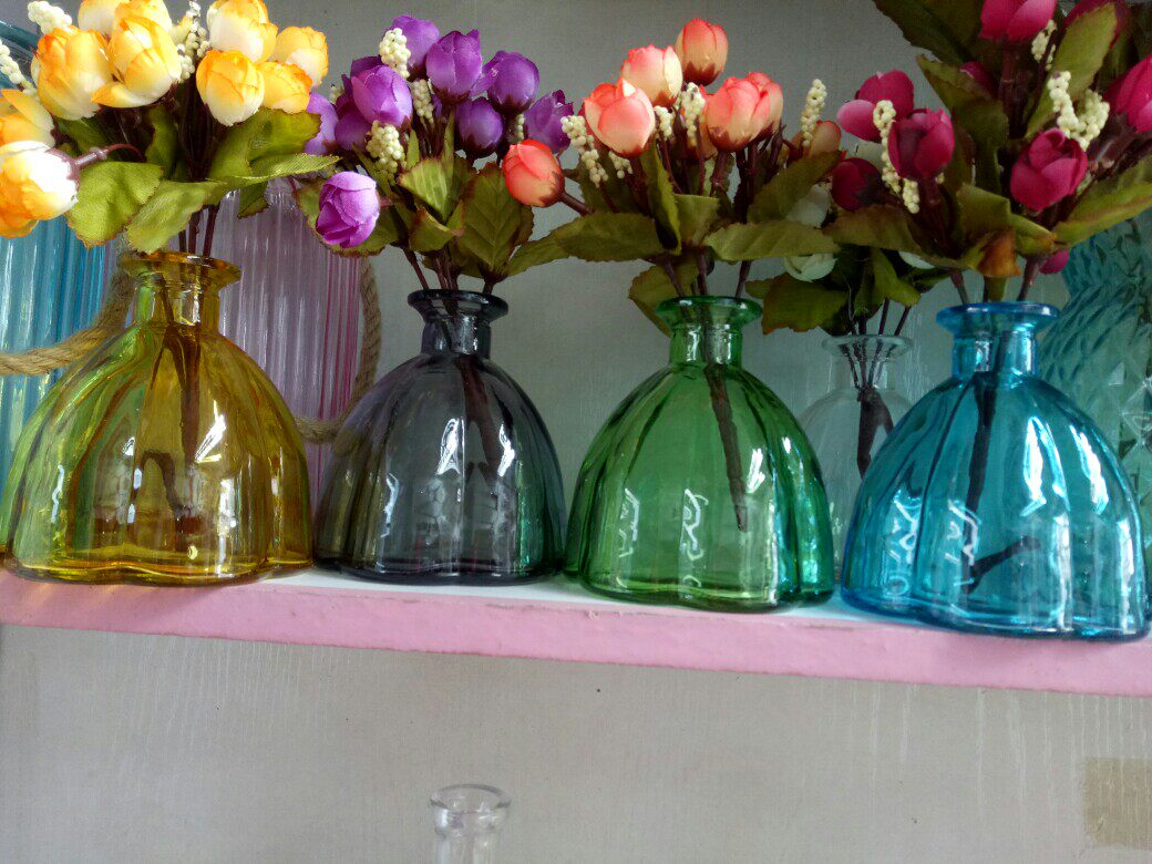 Creative European-style color small mouth pumpkin vase home decoration vase vertical striped glass vase hydroponic bottle