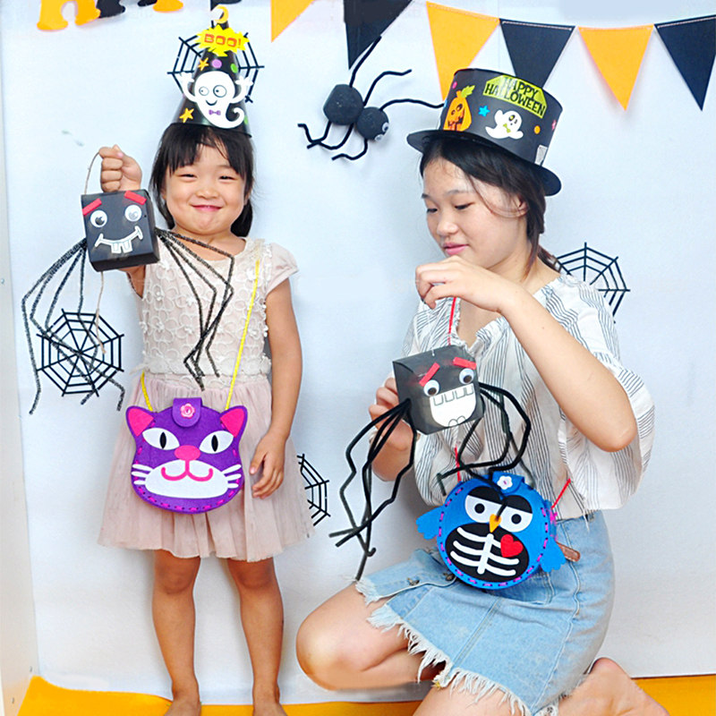 Hippo Halloween black spider piggy bank hanging hanging hanging kindergarten children handmade DIY production materials