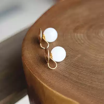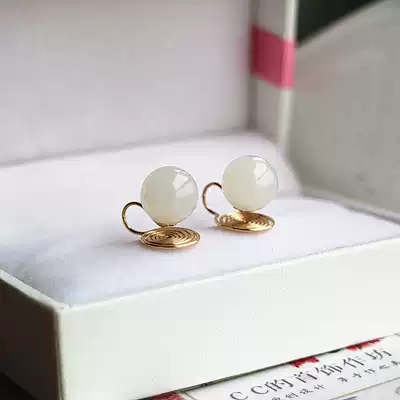 Warm Hetian white jade high-end ear clip new product CC jewelry workshop original exquisite handmade mosquito coil plate earrings