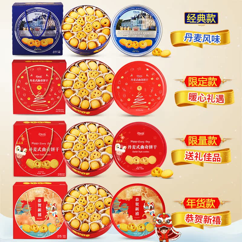 Danish Flavored Cookie Cookie 600g Gift Boxes Iron Case Canned Year Goods Walk Relatives Over The Years Goods Zero Food Whole Boxes