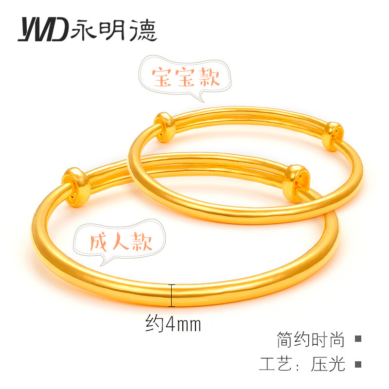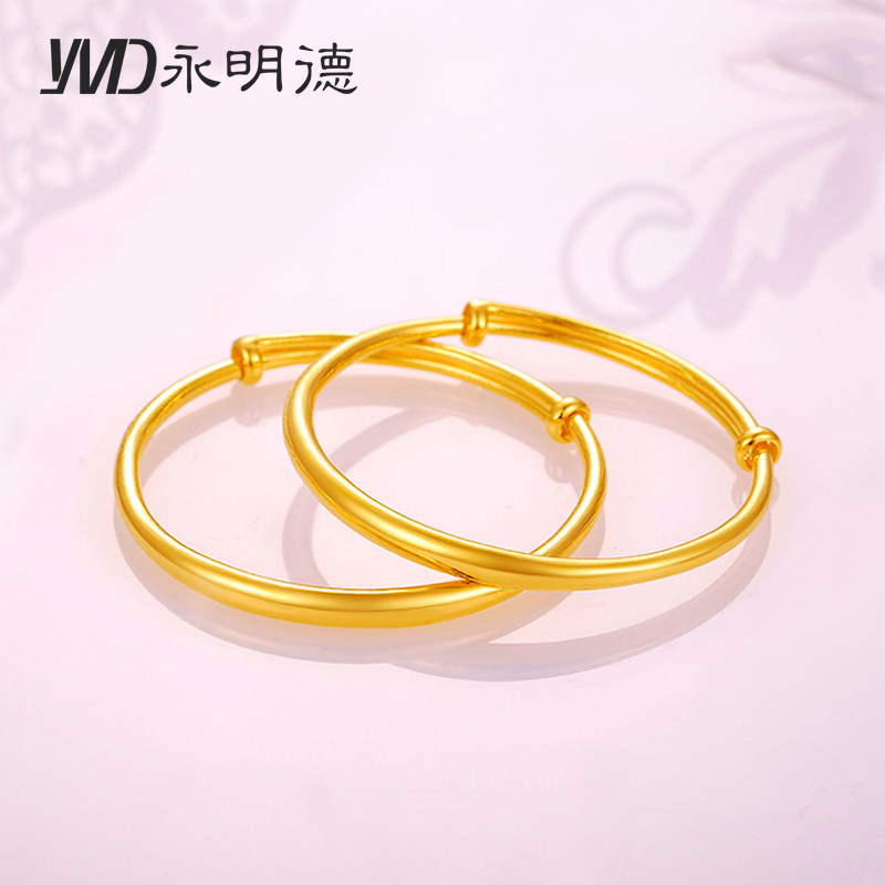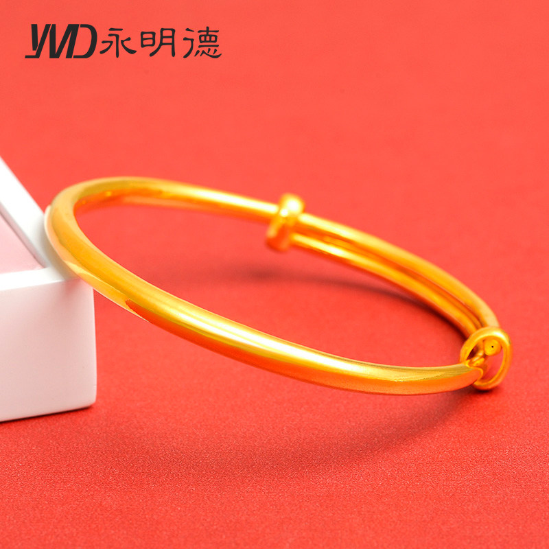 Off the shelf Bracelet women's 999 pure gold bracelet 3D hard gold mother's glossy surface bold and large gold bracelet atmosphere adjustable